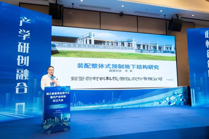 大會由嘉興市住房和城鄉建設局主辦,嘉興市建筑工業學校、嘉興職業技術學院、嘉興市城建職工培訓中心及嘉興市綠色建筑與建筑工業化協會共同舉辦。成立儀式上,宣讀了學院30家成員單位名單并進行了授牌儀式。作為學院理事單位之一,錦蕭科技董事長李軍應邀出席大會接受授牌,并受邀作《裝配整體式預制地下結構研究》專題報告,與參會領導、專家、學者共同探討裝配式建筑領域研究,持續發揮錦蕭專業價值,助力引領嘉興市裝配式建筑高質量發展。