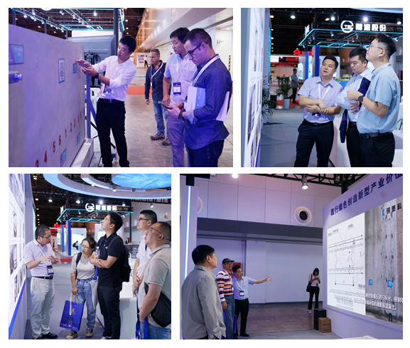 此次亮相展會,錦蕭科技重點展示了兩項技術成果,即預制構件鋼筋套筒連接灌漿二次補灌工藝和裝配整體式預制地下結構技術介紹。通過視頻展播、圖文介紹、實物展示等方式,吸引了行業內外參展者的駐足參觀,交流探討。
