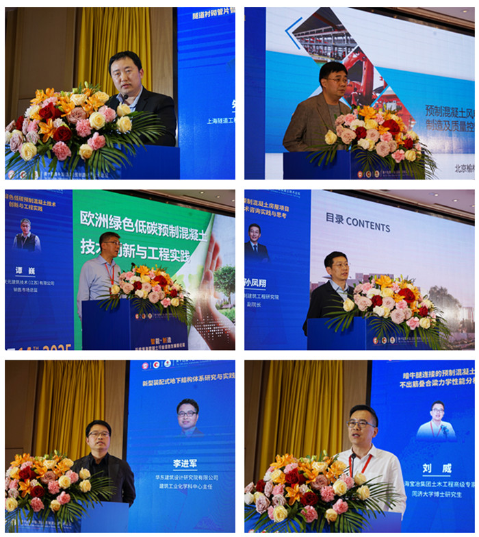 上海隧道工程有限公司構件分公司副總工程師萬洋,北京榆構有限公司總工程師劉昊,艾列天元建筑技術(江蘇)有限公司銷售市場總監譚巍,北京預制建筑工程研究院副院長孫鳳翔,華東建筑設計研究院有限公司建筑工業化學科中心主任李進軍,上海寶冶集團土木工程高級專家、同濟大學博士研究生劉威,分別以《隧道襯砌管片智能制造創新探索實踐》、《預制混凝土風電塔筒高精度制造及質量控制技術》、《歐洲綠色低碳預制混凝土技術創新與工程實踐》、《沙特某預制混凝土房屋項目全過程技術咨詢實踐與思考》、《新型裝配式地下結構體系研究與實踐》、《暗牛腿連接的預制混凝土不出筋疊合梁力學性能分析》為主題作報告。
