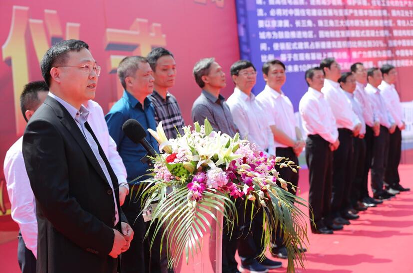 錦蕭科技董事長李軍介紹投資興建"年產(chǎn)70萬立方米建筑裝配式預(yù)制構(gòu)件生產(chǎn)建設(shè)項(xiàng)目"是積極響應(yīng)國家發(fā)展綠色建筑業(yè)的號召,項(xiàng)目總投資為8.05億元,新征建設(shè)用地152601平方米,工廠生產(chǎn)及配套用房建筑面積8.8萬平方米,擁有10個車間,成品堆場面積為8.34萬平方米,并配備運(yùn)輸碼頭一座,建成后年產(chǎn)量最大達(dá)70萬立方米,將成為目前國內(nèi)單個最大的裝配式PC構(gòu)件生產(chǎn)基地,產(chǎn)品會覆蓋上海、蘇州、嘉興、杭州、紹興、寧波等長三角地區(qū),并對前來參加奠基儀式的各位領(lǐng)導(dǎo)和各界朋友表示衷心感謝,作了歡迎詞。