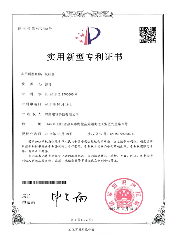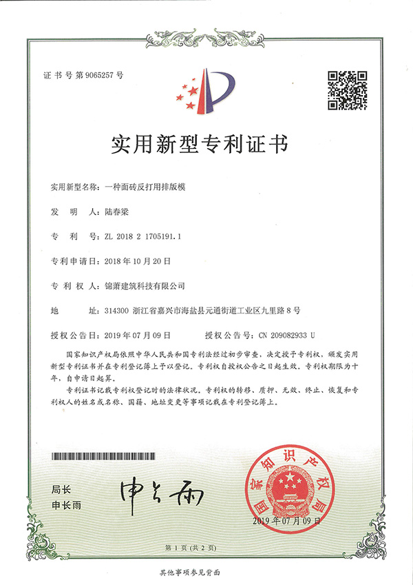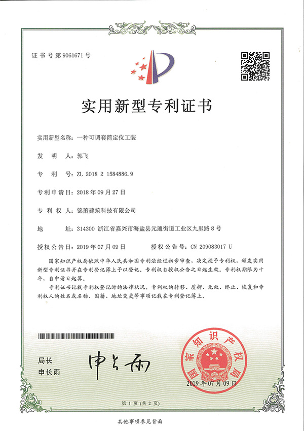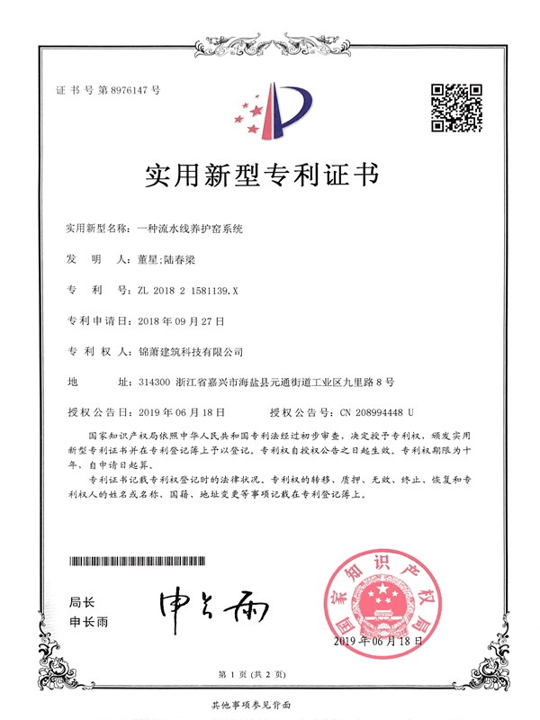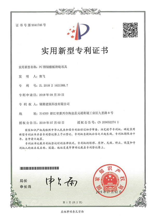 專利證書-一種隔熱隔聲預制稱重剪力墻