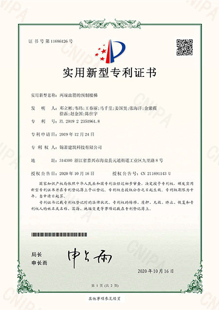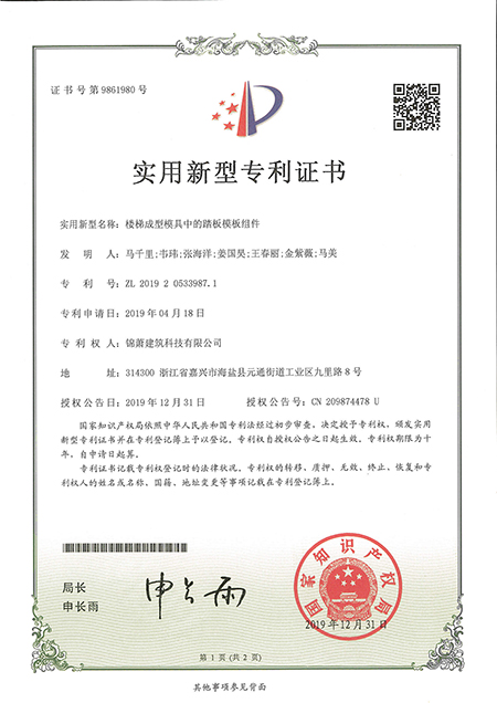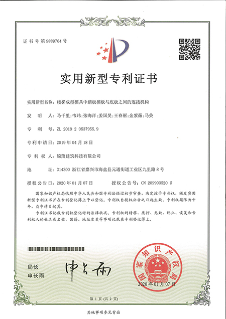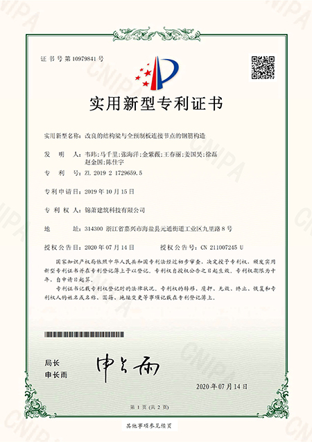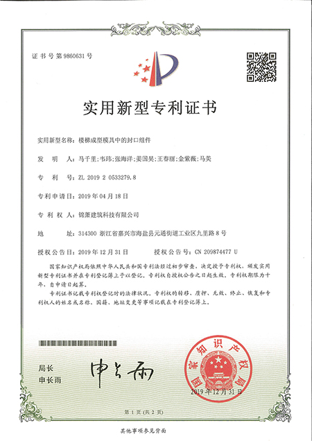 專利證書--用于PC預制構(gòu)件的脫模裝置